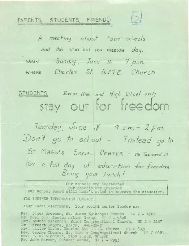 [1] Audrea Jones Dunham, Boston’s 1960s Civil Rights Movement: A Look Back Stay out for Freedom 1963 WGBH Essay Open Vault (WGBH Educational Foundation, 2020)