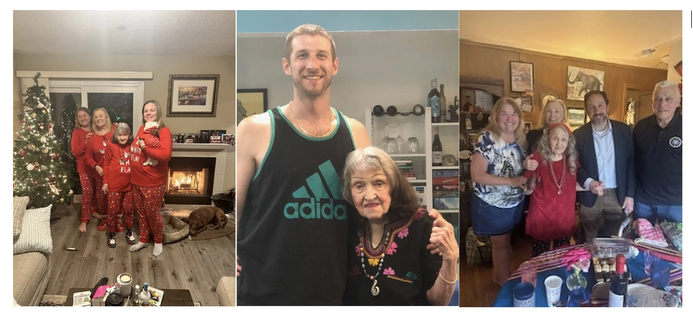 (Left) Carole, Patty, and Alice Lieber, and Patty’s daughter, Jennifer O’Halloran. (Middle) Patty’s son, Daniel O’Halloran, and Alice. (Right) Carole, Patty, and Alice Lieber, City Councilor Benjamin Weber, and Marc Lieber