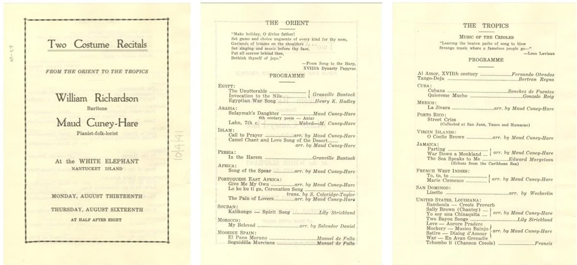 For nearly 20 years, Hare and Richardson performed concerts across the United States such as this one given in 1928 in Nantucket, MA, UMass Amherst Credo